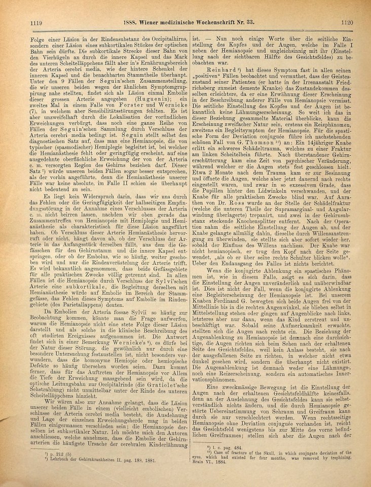 Da die Hemianopsie in unseren beiden Fällen Hemi-