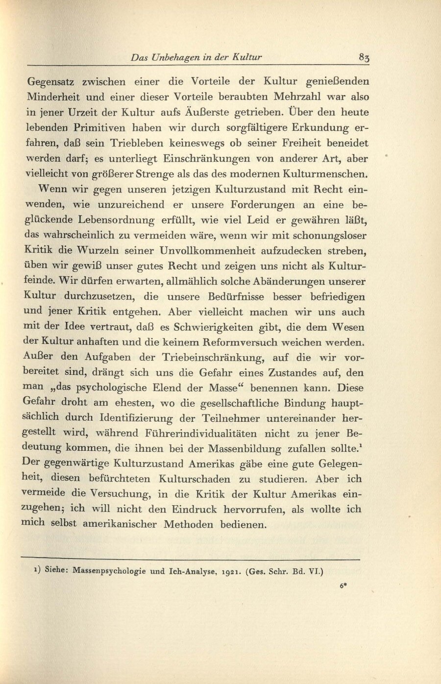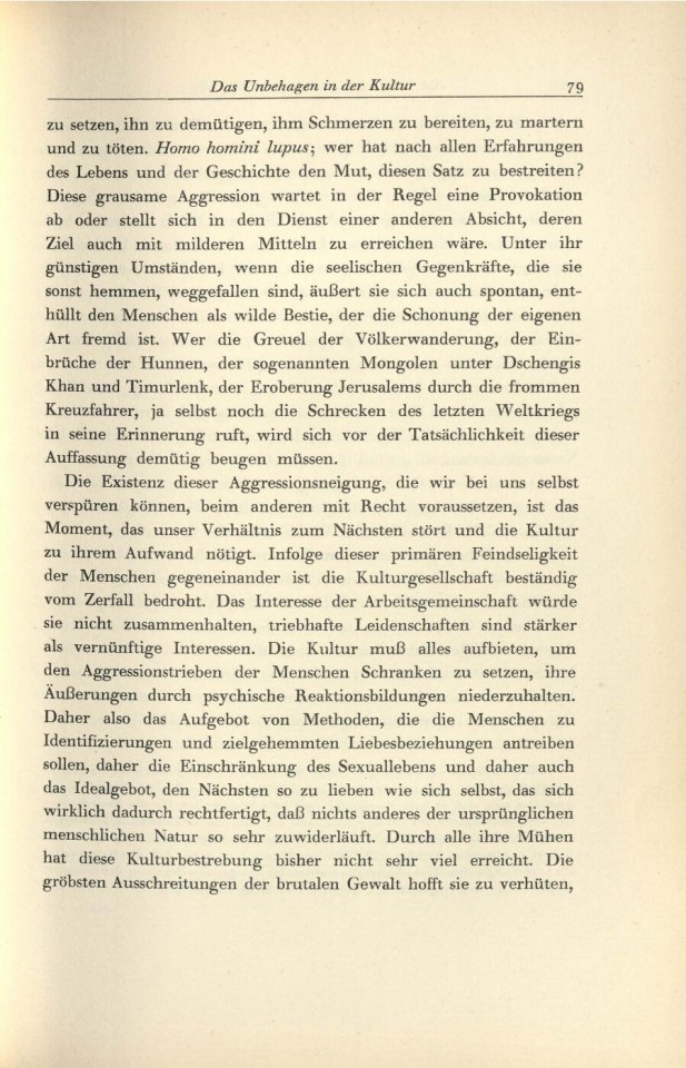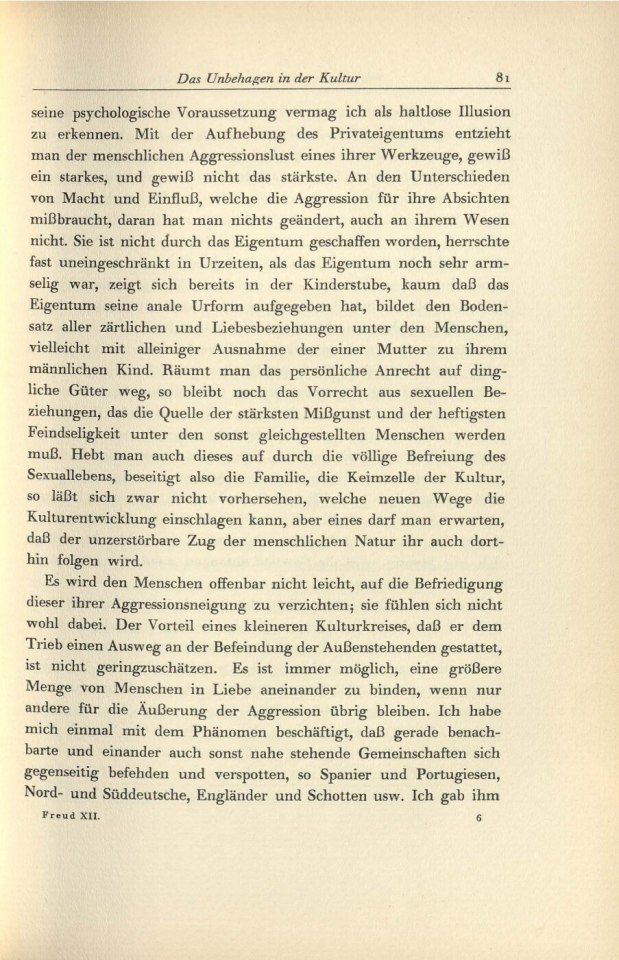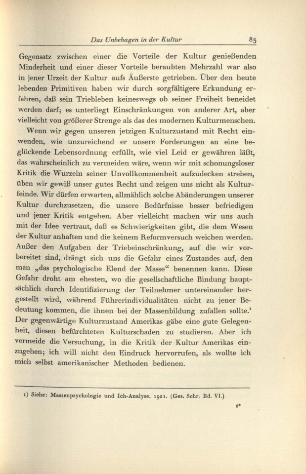 Das Unbehagen in der Kultur/1934 /1934: Das Unbehagen in der KulturTitelI.II.III.IV.V.VI.VII.VIII. S. S. S. S. S. S. S. S. S. S. Komponente Unterkapitel Art der Manifestation Druckschrift Medientyp Papier Referenztext Nein TEI Export abgeschlossen Nein Format Buch Schriftart Druckschrift Sprache Deutsch Zustand Unbeschädigt Original/Kopie Original Archiv, Bibliothek IPU Weiterführende Informationen Publikationsart Text in Werkausgabe AutorInnen Freud, Sigmund