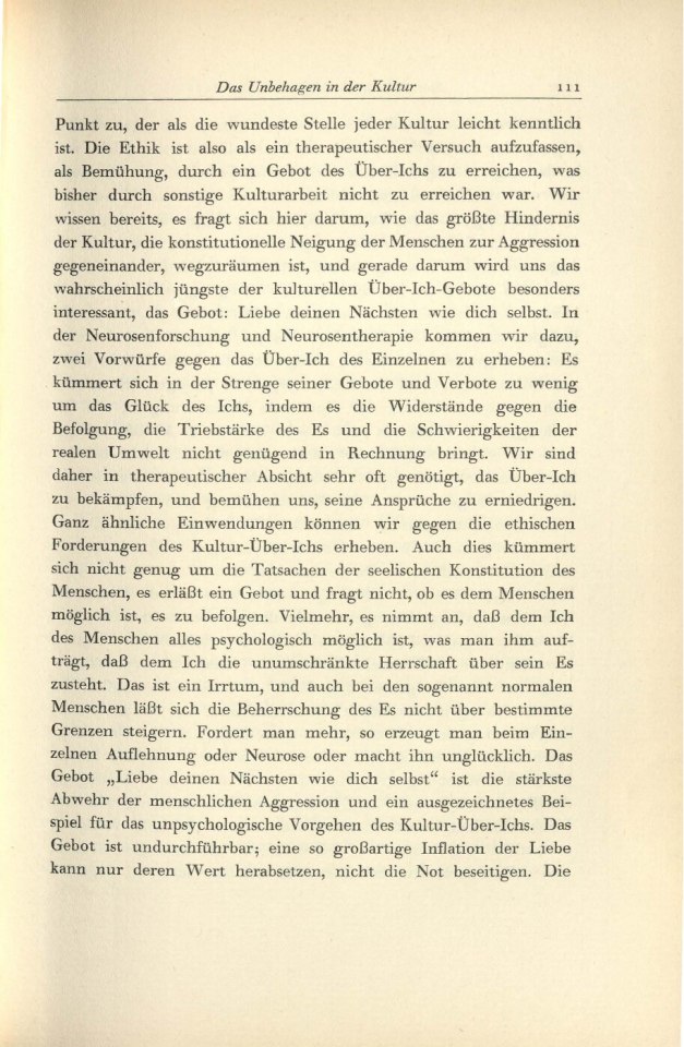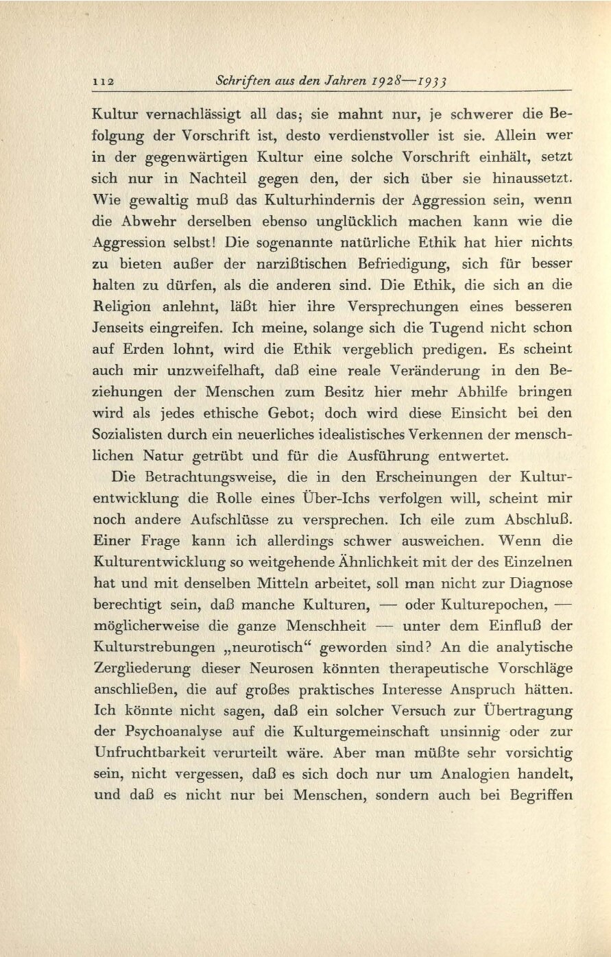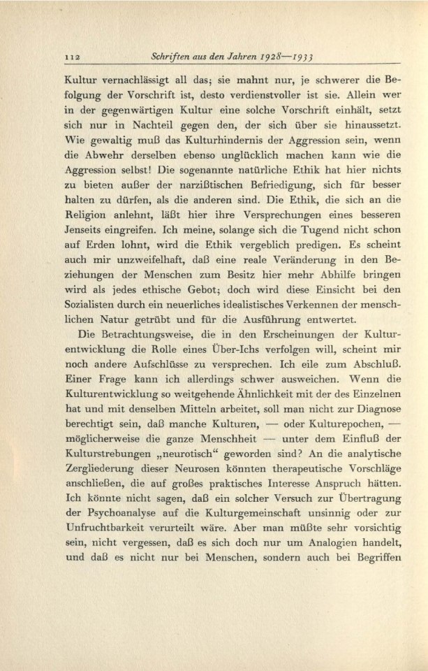 Das Unbehagen in der Kultur/1934 /1934: Das Unbehagen in der KulturTitelI.II.III.IV.V.VI.VII.VIII. S. S. S. S. S. S. S. S. S. S. S. S. S. S. Komponente Unterkapitel Art der Manifestation Druckschrift Medientyp Papier Referenztext Nein TEI Export abgeschlossen Nein Format Buch Schriftart Druckschrift Sprache Deutsch Zustand Unbeschädigt Original/Kopie Original Archiv, Bibliothek IPU Weiterführende Informationen Publikationsart Text in Werkausgabe AutorInnen Freud, Sigmund