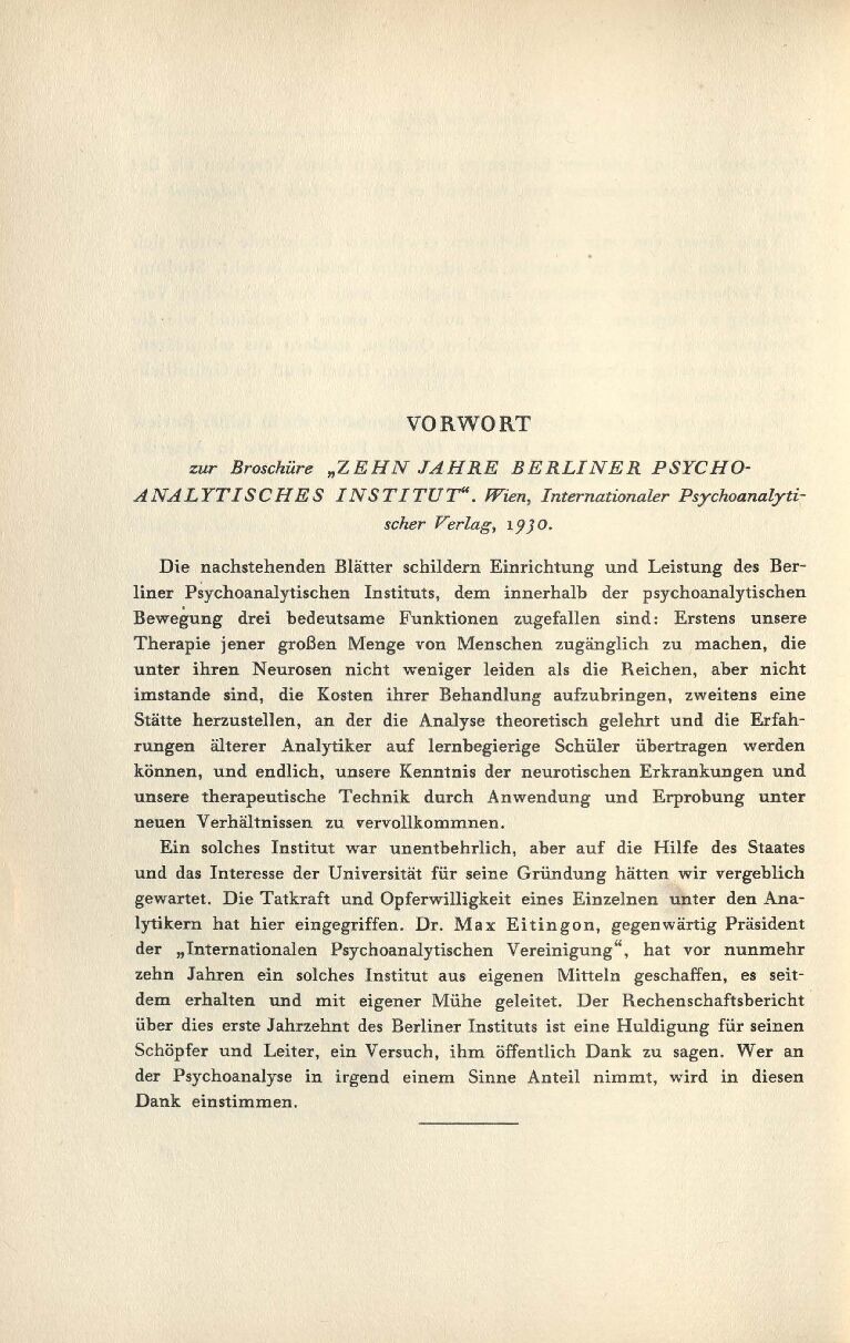 zur Broschüre „Zehn Jahre Berliner Psychoanalytisches Institut“. Wien, Internationaler Psychoanalytischer Verlag, 1930