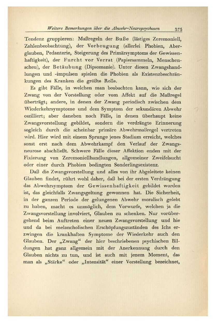 drucksweise führt, und die Beziehung auf rezente, den alten bloß analoge Erlebnisse.Die dritte Gruppe der bei Zwangsneurose gefundenen Sym-