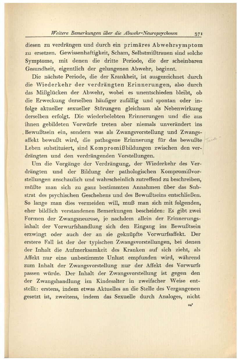mit der Zwangsneurose zu verwerten. Die Verdrängung als Kern