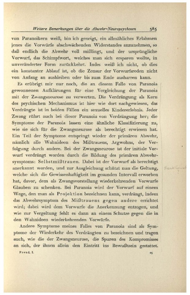 Wege, den man als Projektion bezeichnen kann, verdrängt, indem