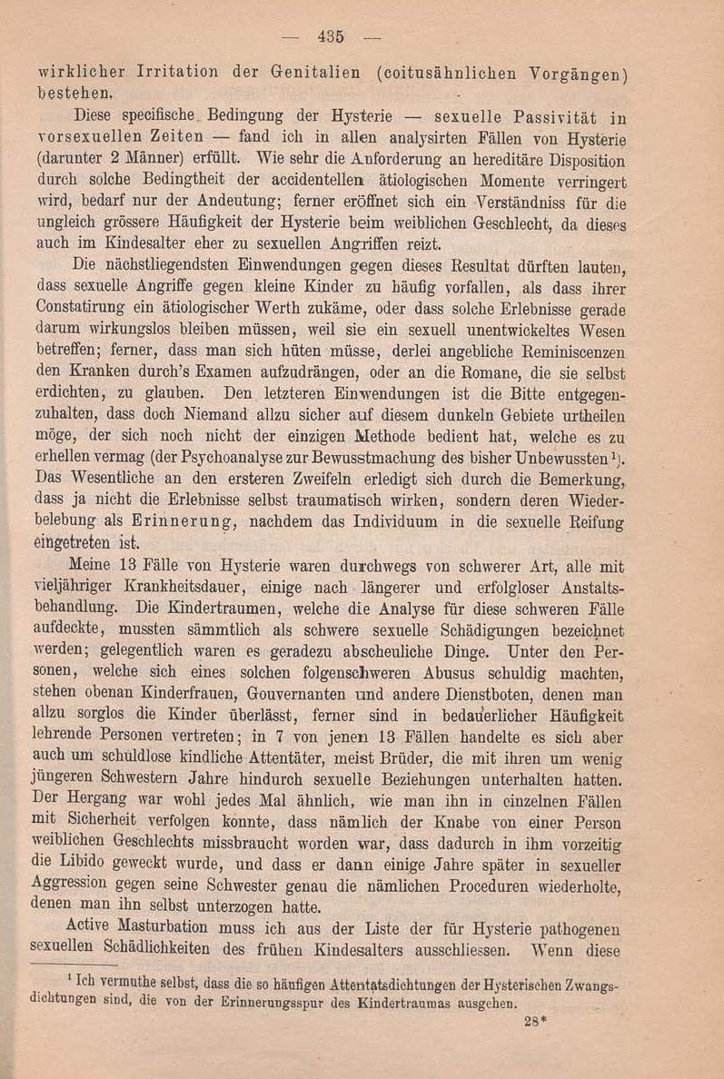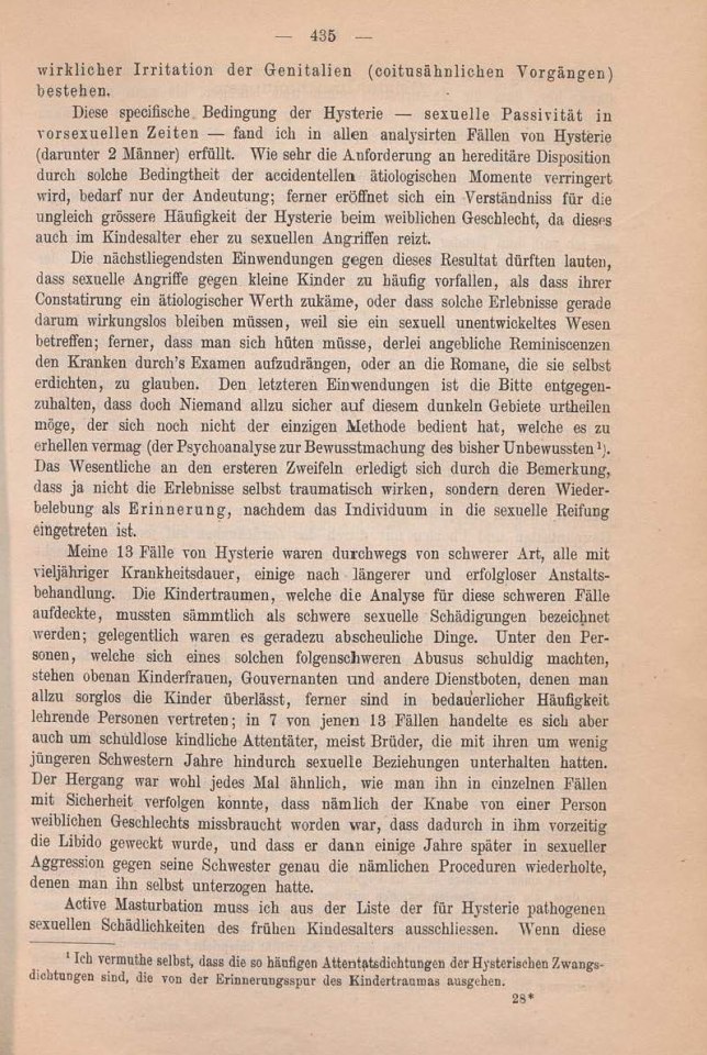 vorsexuellen Zeiten – fand ich in allen analysirten Fällen von Hysterie