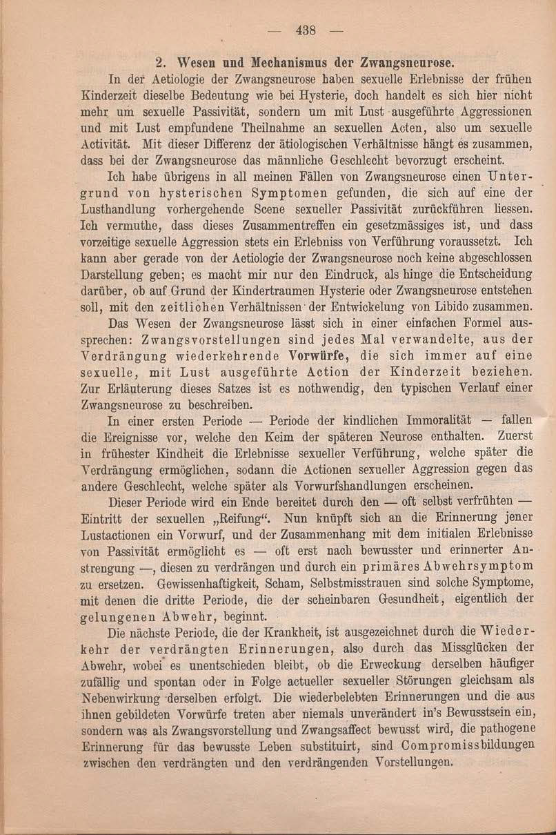 sexuellen Schädlichkeiten des frühen Kindesalters ausschliessen. Wenn diese1 Ich vermuthe selbst, dass die so häufigen Attentatsdichtungen der Hysterischen Zwangs-