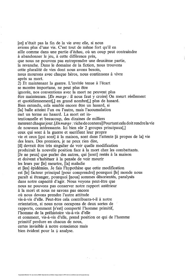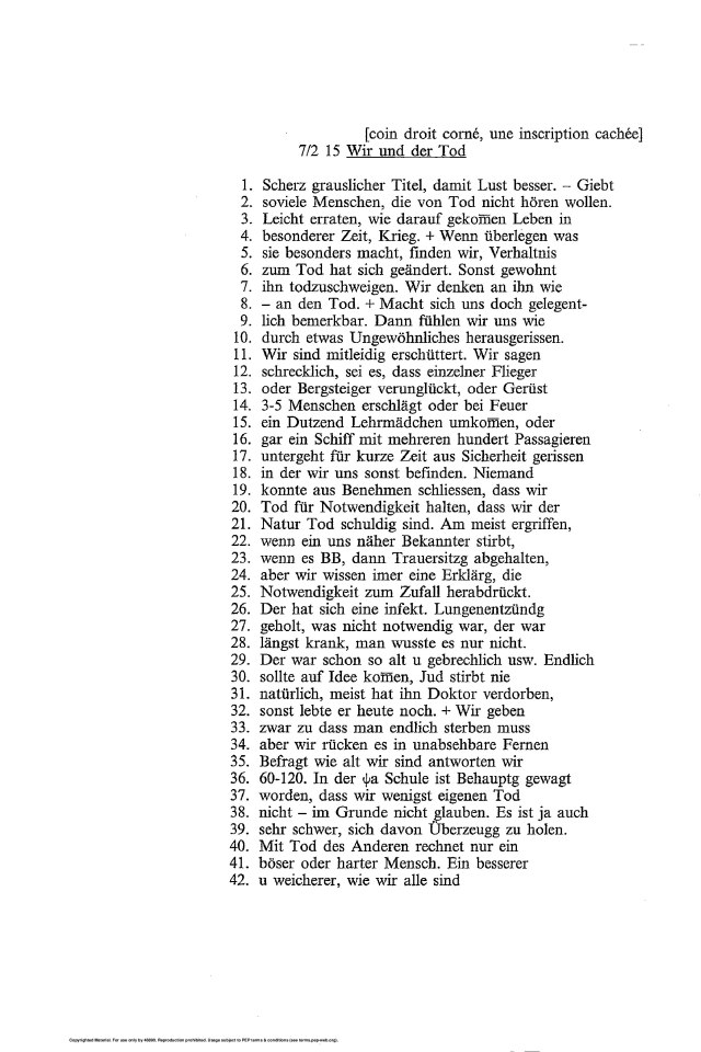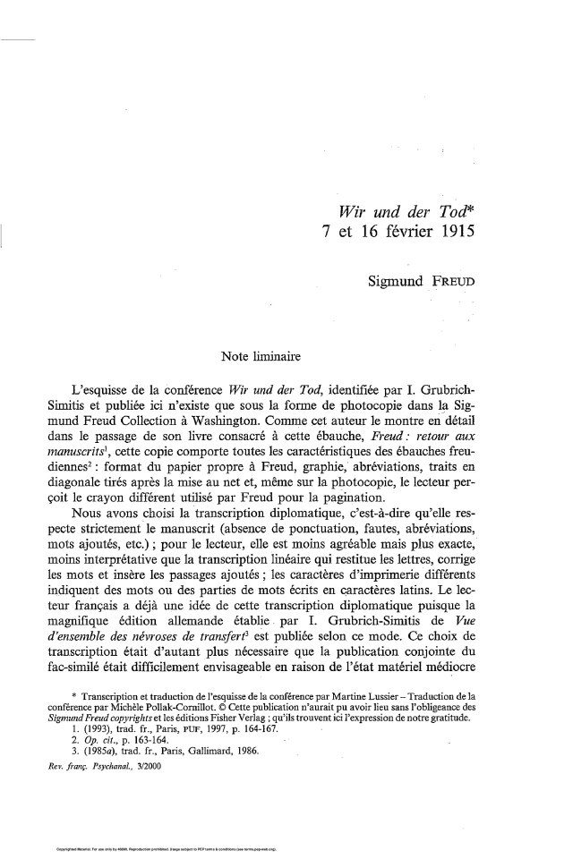 L’esquisse de la conference Wir und der Tod, identifiee par I. Grubrich-