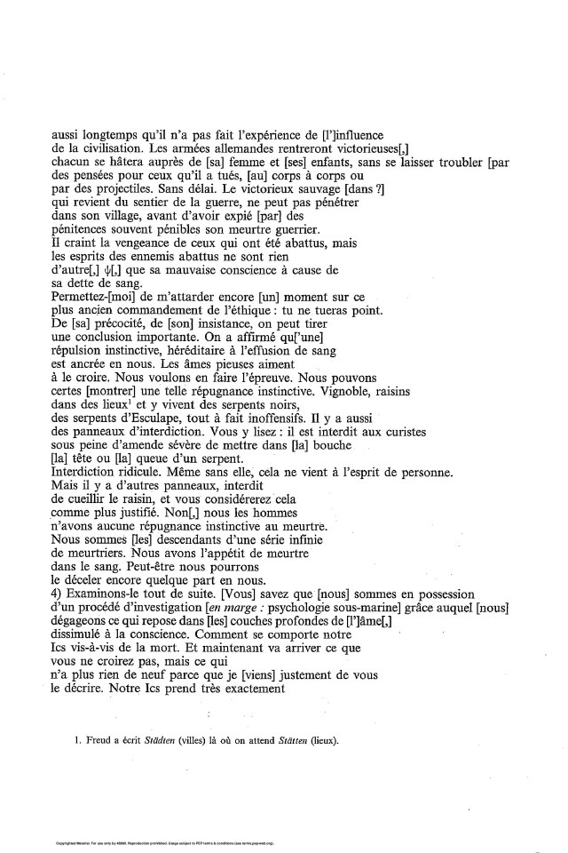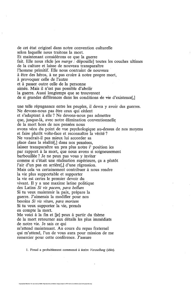 dans la biblioth&que de Freud une version presque complete de cette conference.