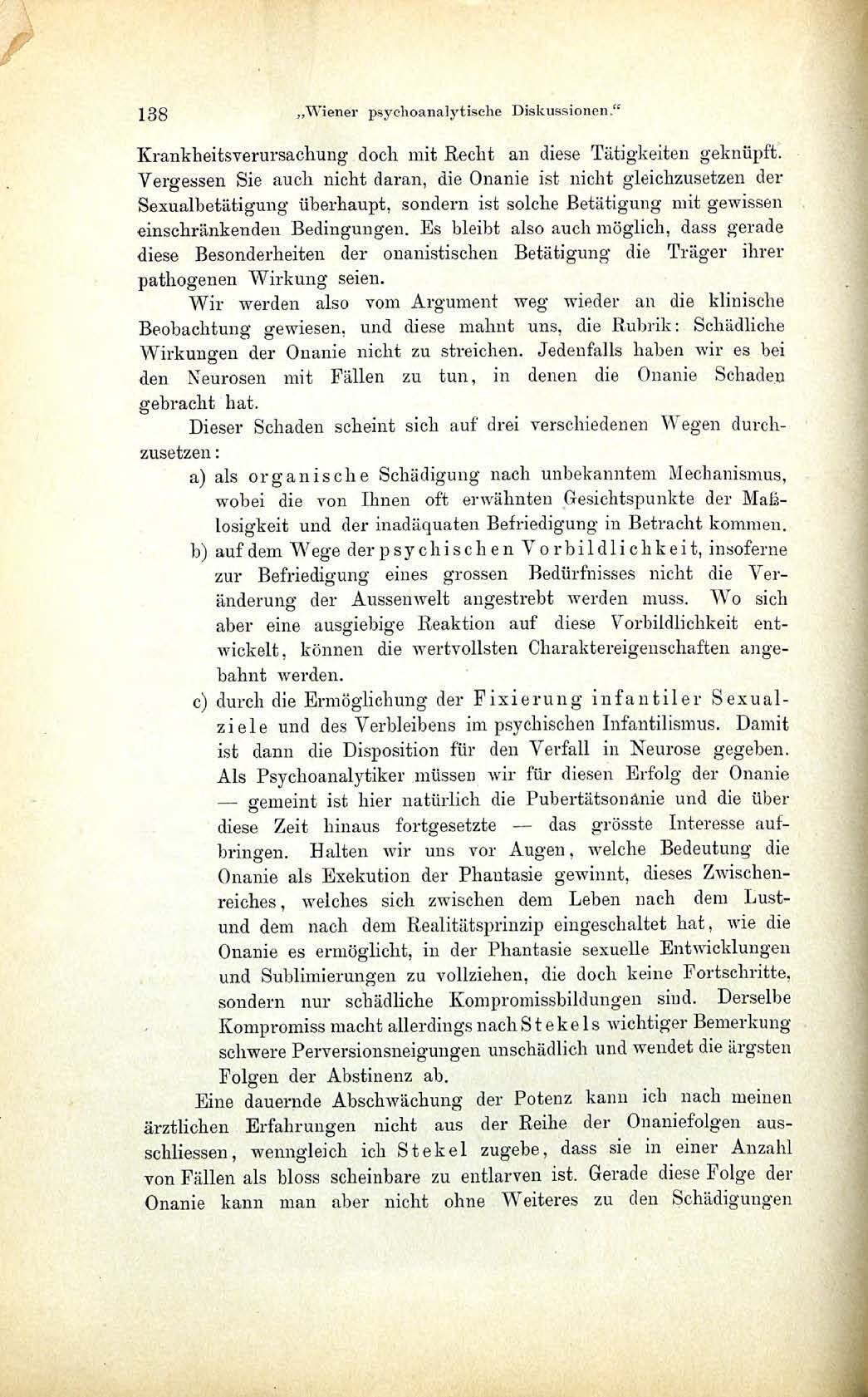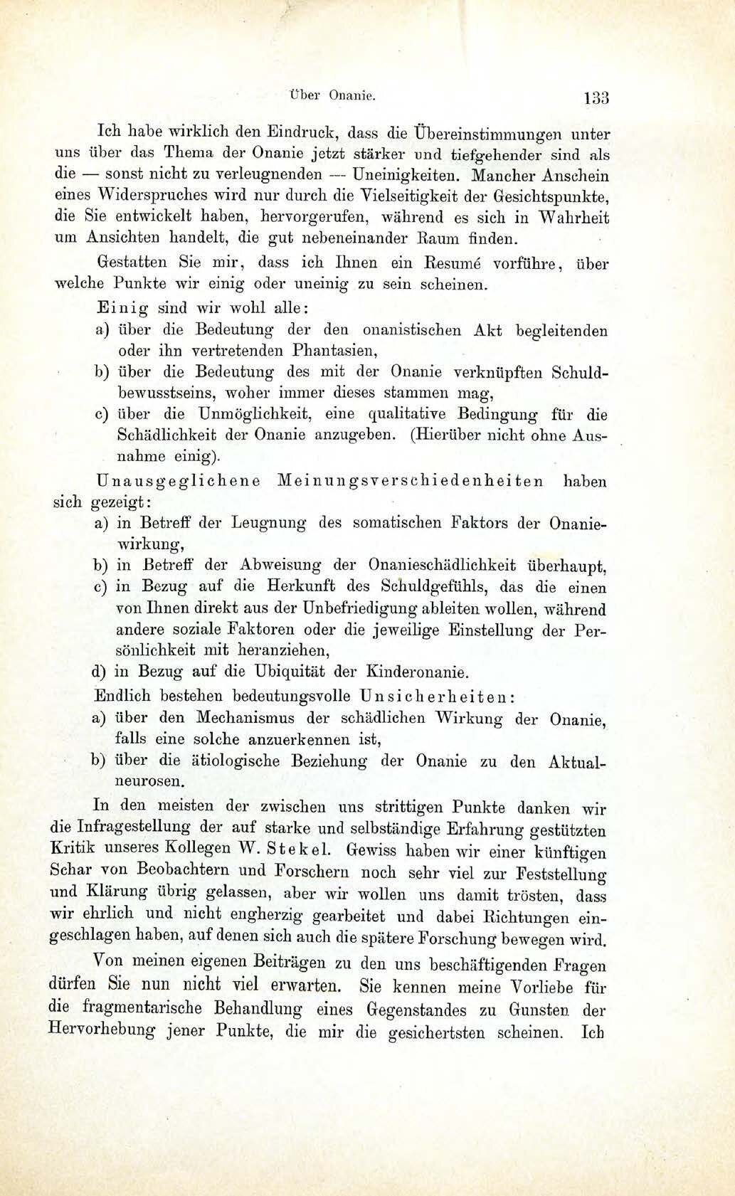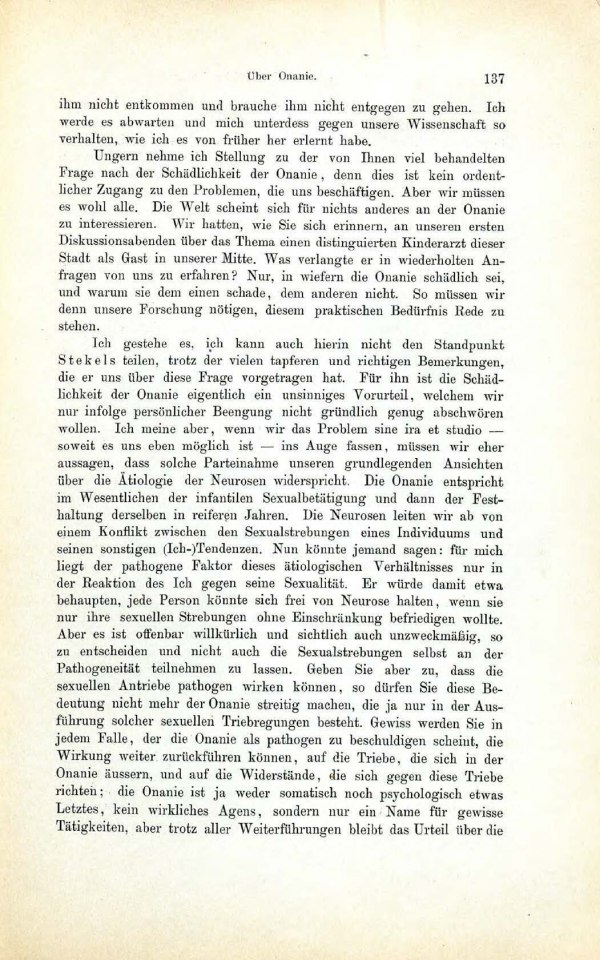 ärztlichen Erfahrungen nicht aus der Reihe der Onanie folgen ausschliessen, wiewohl ich Stekel zugebe, dass sie in einer Anzahl