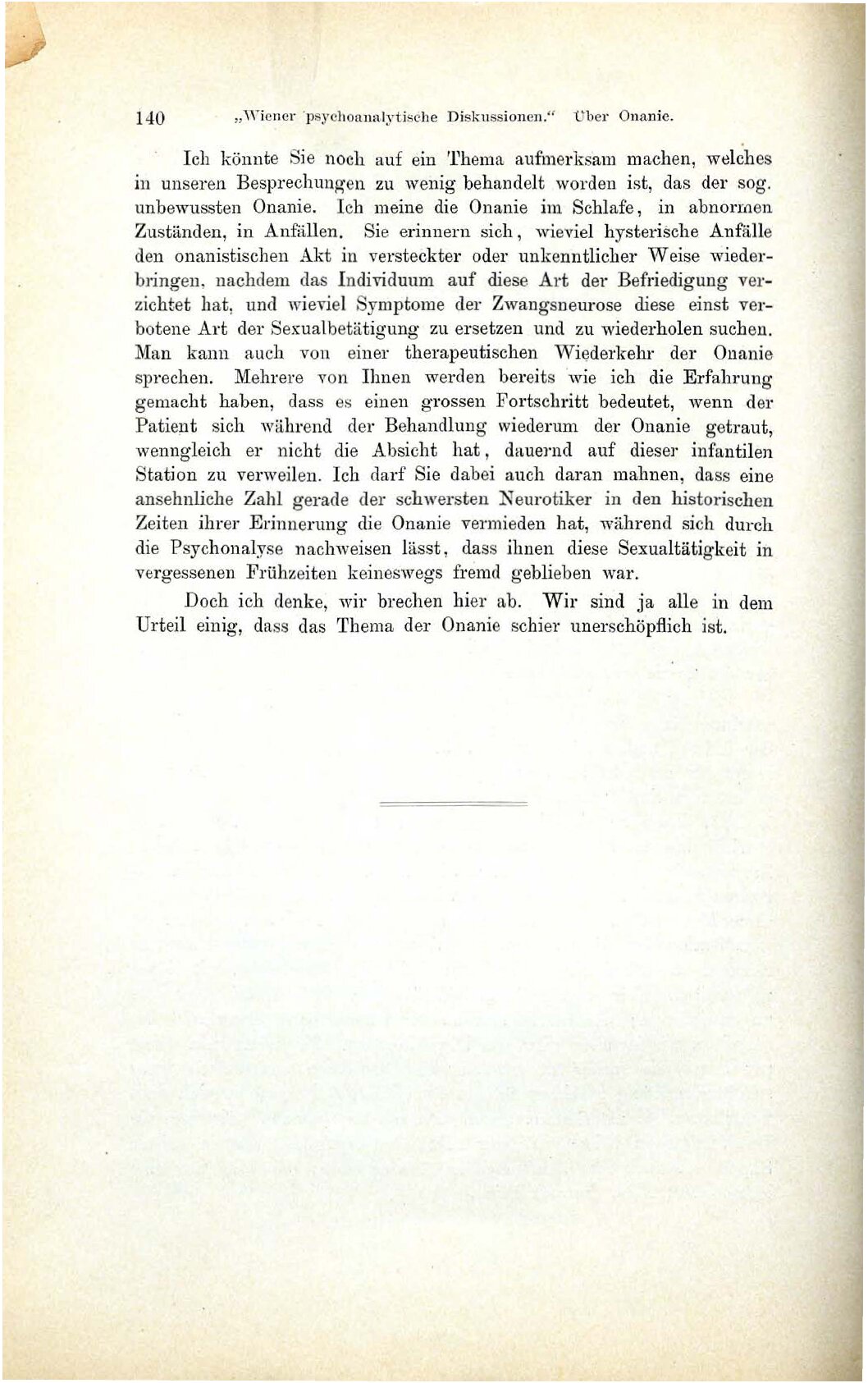 140 „Wiener psychoanalytische Diskussionen.“ Über Onanie.