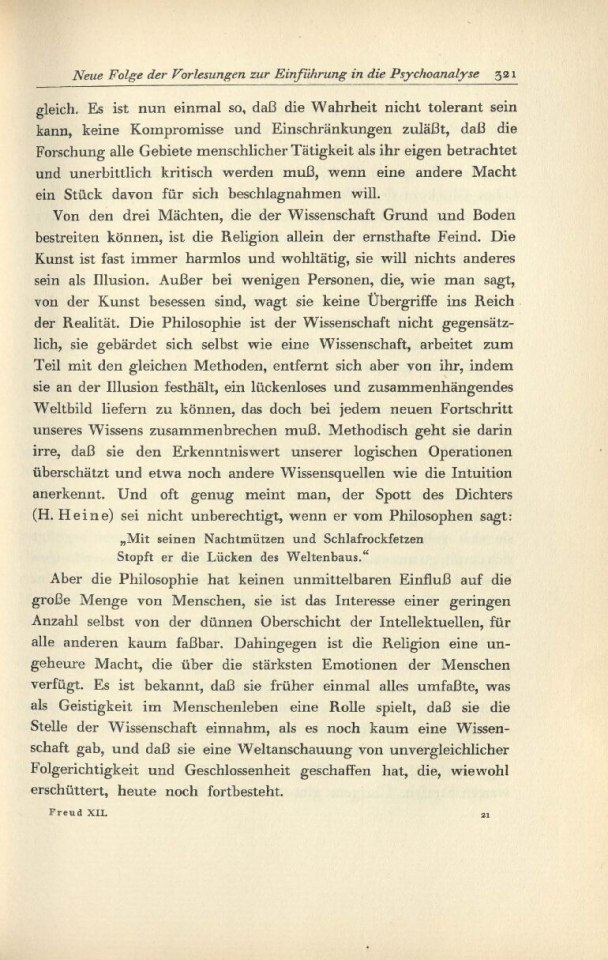 Neue Folge der Vorlesung zur Einführung in die Psychoanalyse/1934 /1934: Neue Folge der Vorlesung zur Einführung in die PsychoanalyseTitelVorwortXXIX. Revision der TraumlehreXXX. Traum und OkkultismusXXXI. Die Zerlegung der psychischen PersönlichkeitXXXII. Angst und TrieblebenXXXIII. Die WeiblichkeitXXXIV. Aufklärungen, Anwendungen, OrientierungenXXXV. Über eine Weltanschauung S. S. S. S. S. S. S. S. S. S. S. S. S. S. S. S. S. S. S. S. S. S. S. S. S. S. S. S. Komponente Unterkapitel Art der Manifestation Druckschrift Medientyp Papier Referenztext Nein TEI Export abgeschlossen Nein Format Buch Schriftart Druckschrift Sprache Deutsch Zustand Unbeschädigt Original/Kopie Original Archiv, Bibliothek IPU