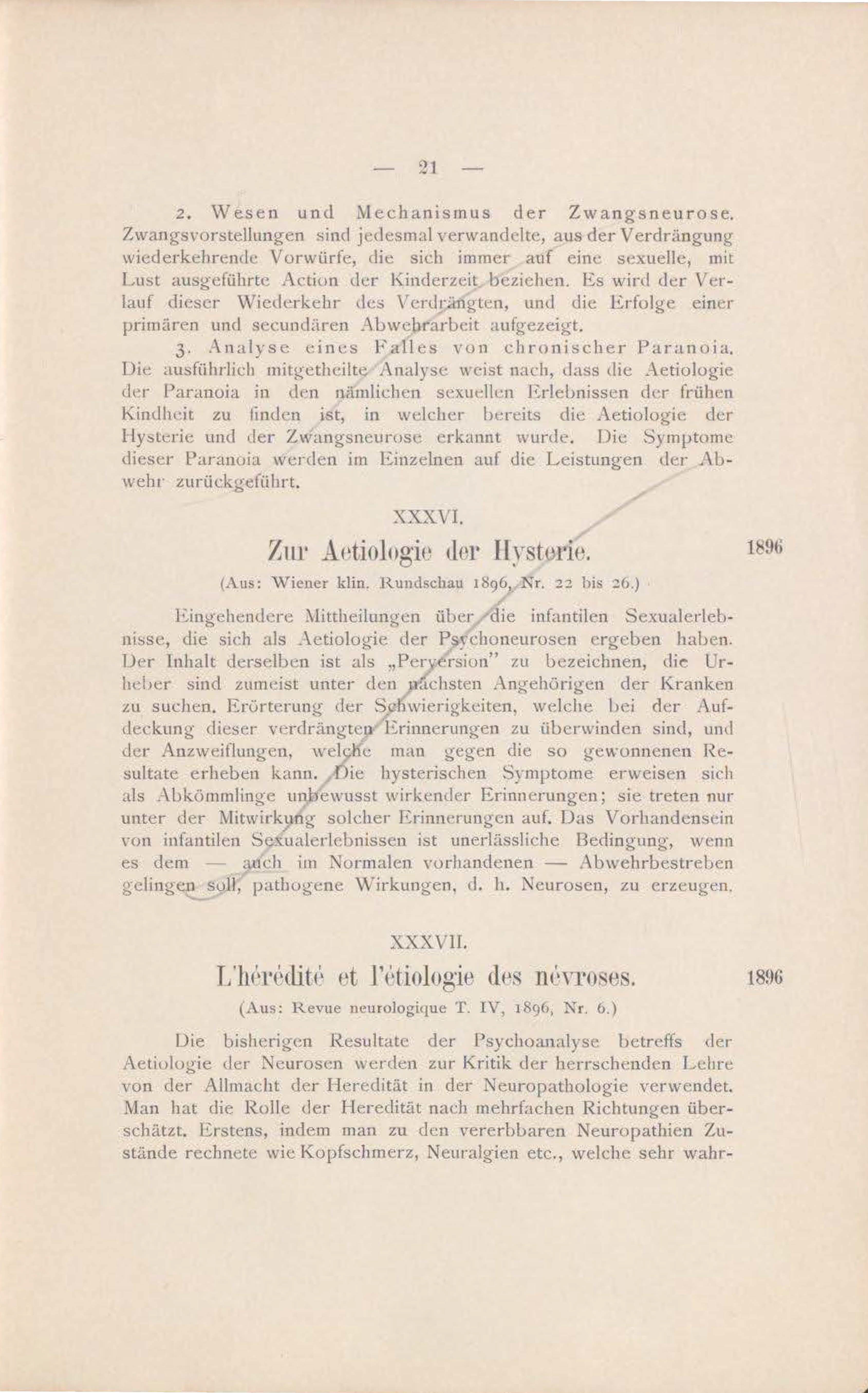 nisse, die sich als Aetiologie der Psychoneurosen ergeben haben.