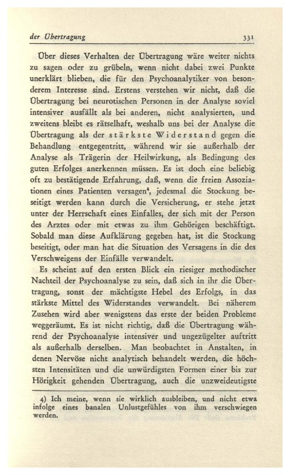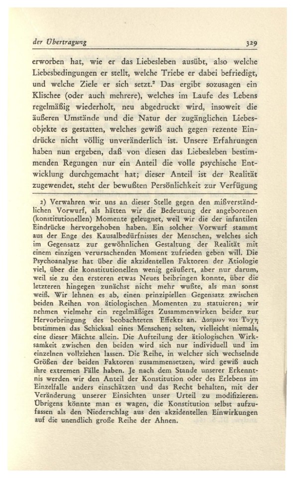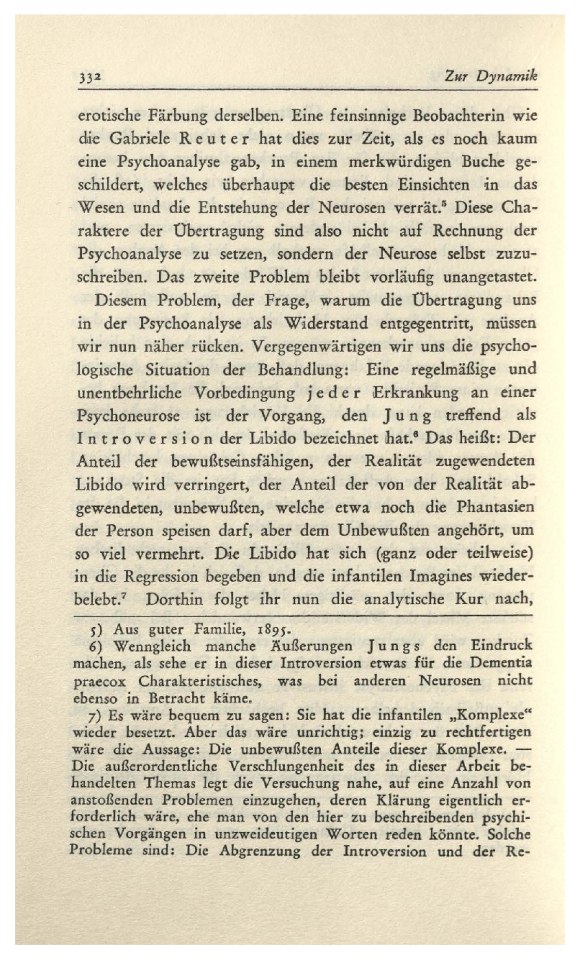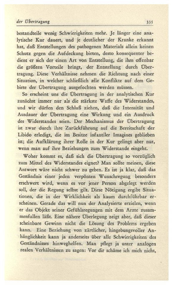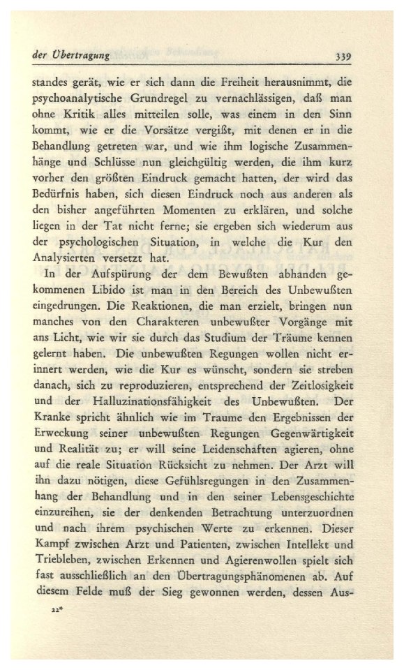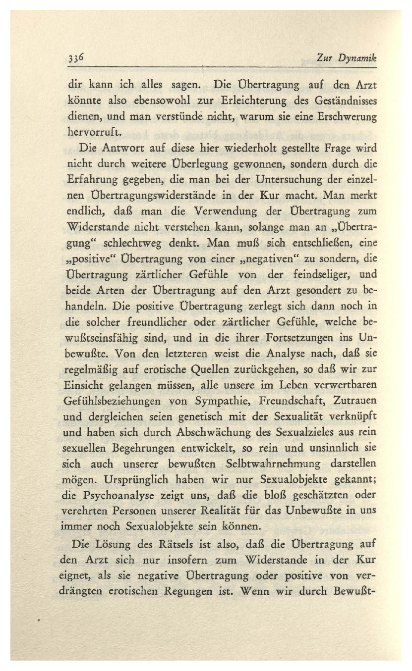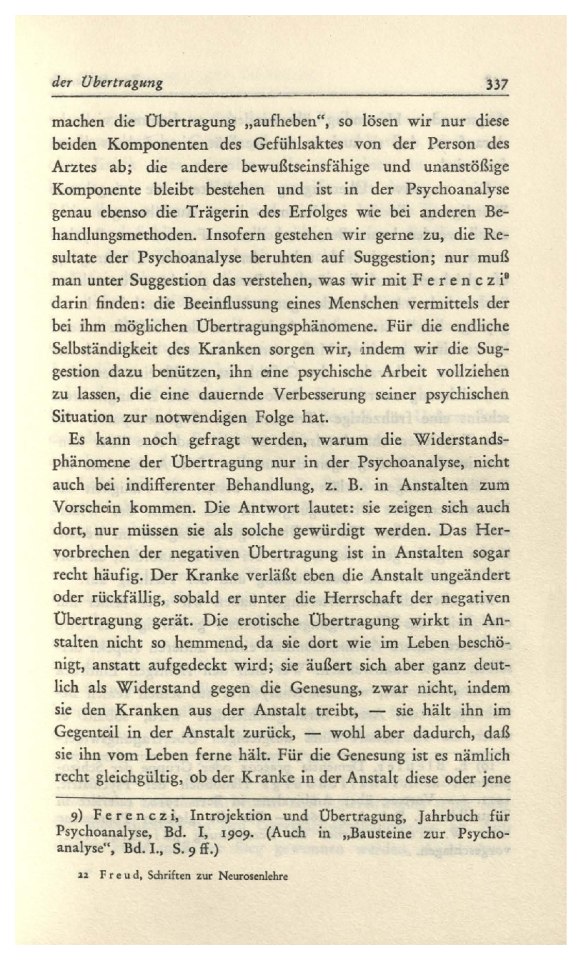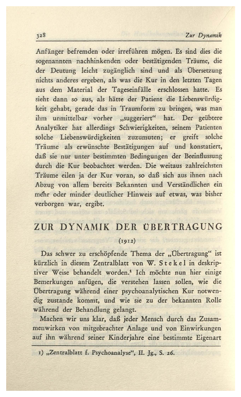 (1912)Das schwer zu erschópfende Thema der „Übertragung“ ist