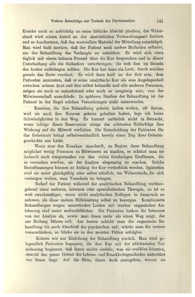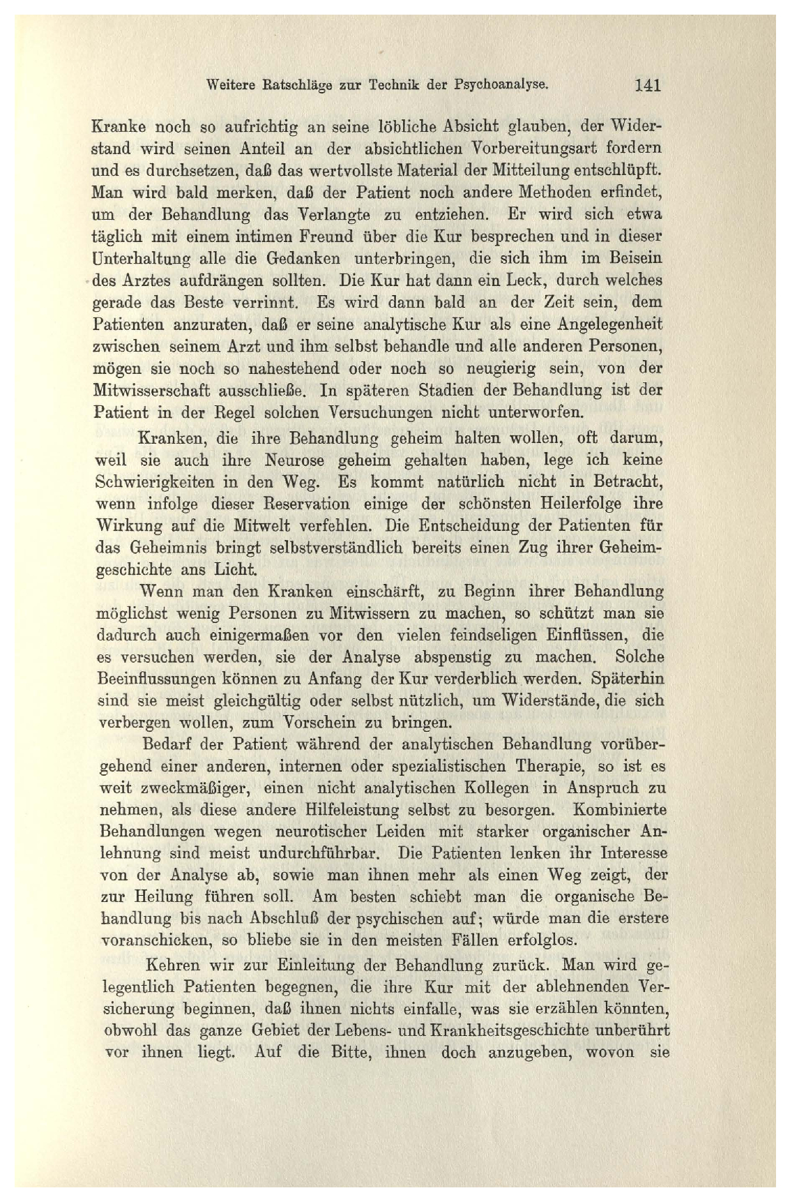 Weitere Ratschlige zur Technik der Psychoanalyse. 141
