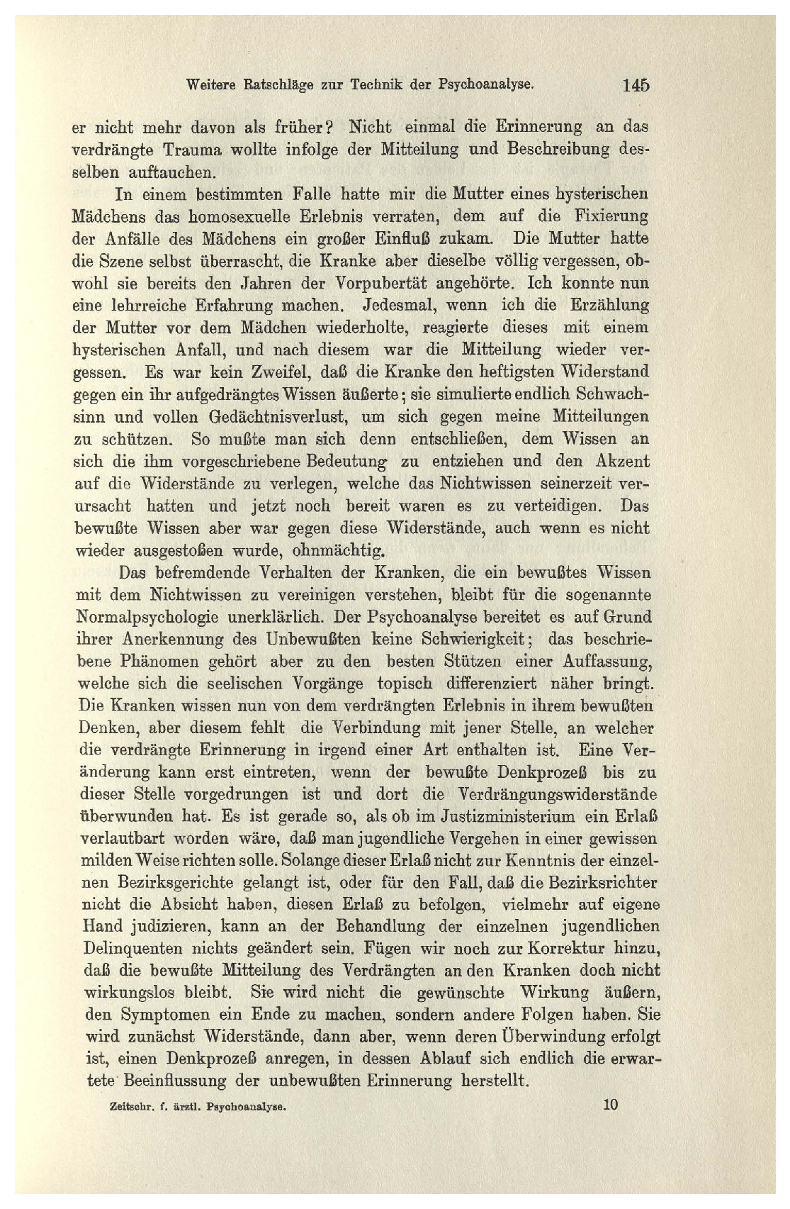 Weitere Ratschläge zur Technik der Psychoanalyse. 145