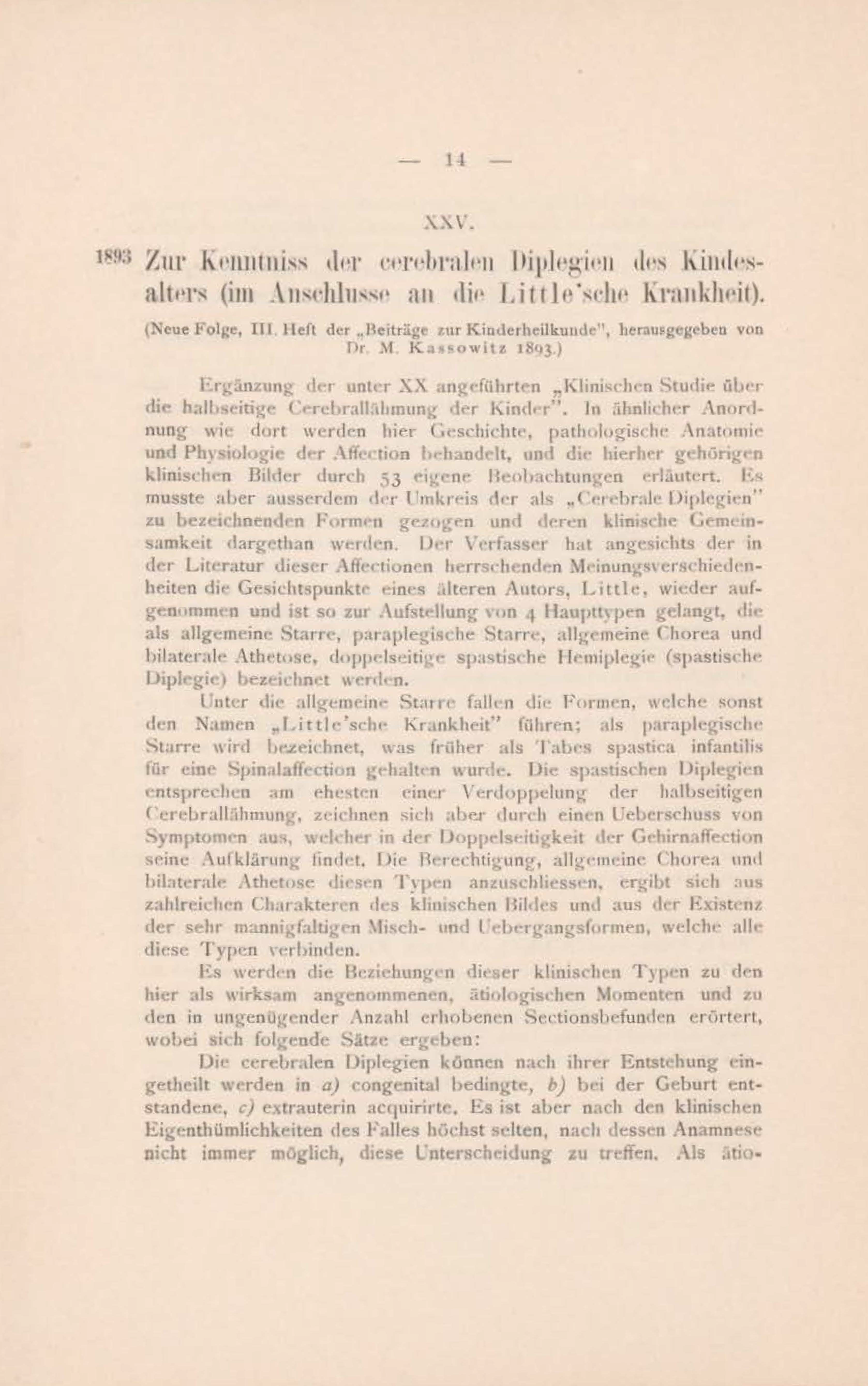 Zur Kenntniss der cerebralen Diplegien des Kindesalters (im Anschluß an die Little’sche Krankheit) 1893-001/1897