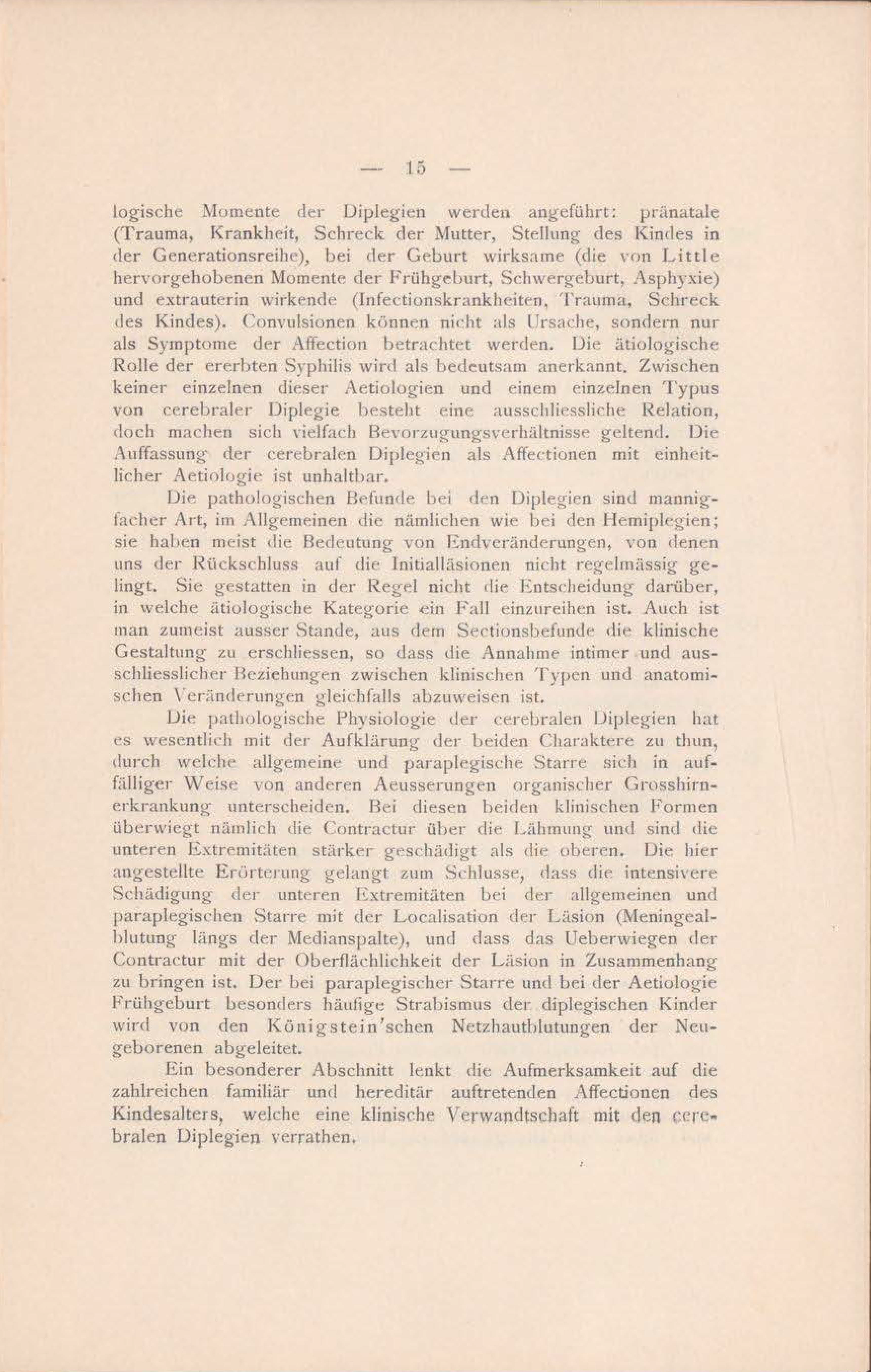 musste aber ausserdem der Umkreis der als „Cerebrale Diplegien“