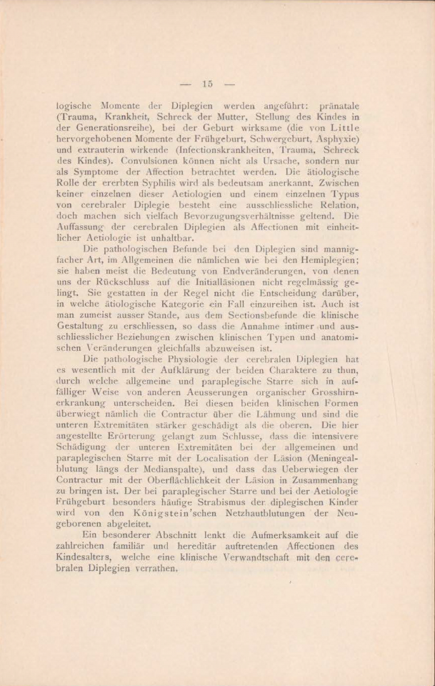 für eine Spinalaffection gehalten wurde. Die spastischen Diplegien