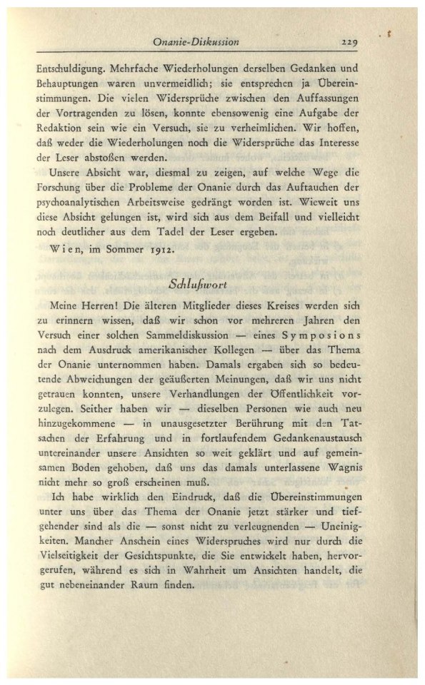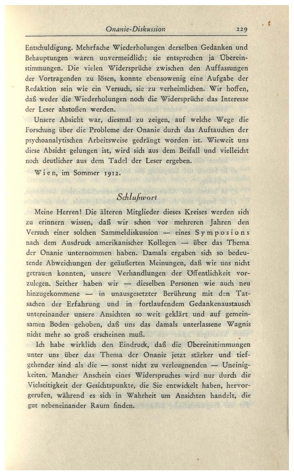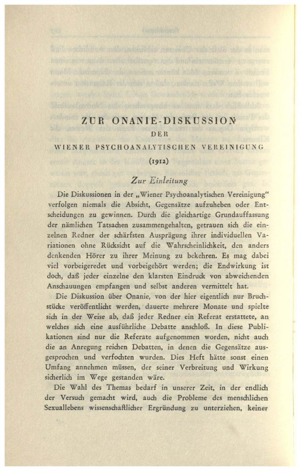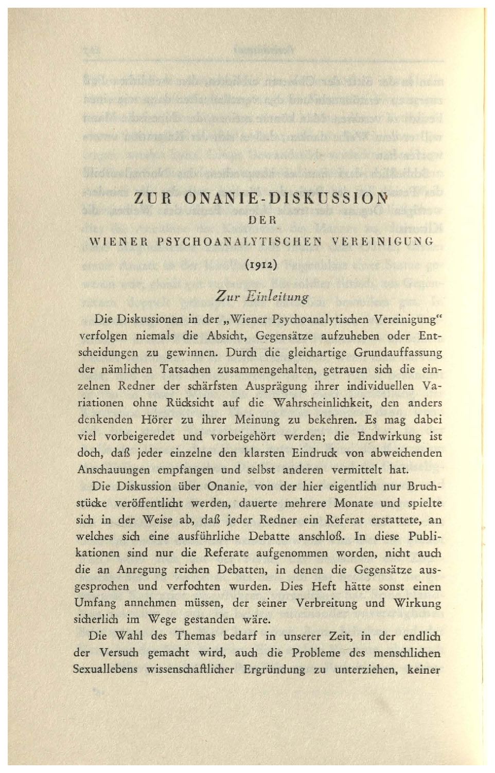 Zur Onanie-Diskussion der Wiener Psychoanalytischen Vereinigung 1912-061/1931