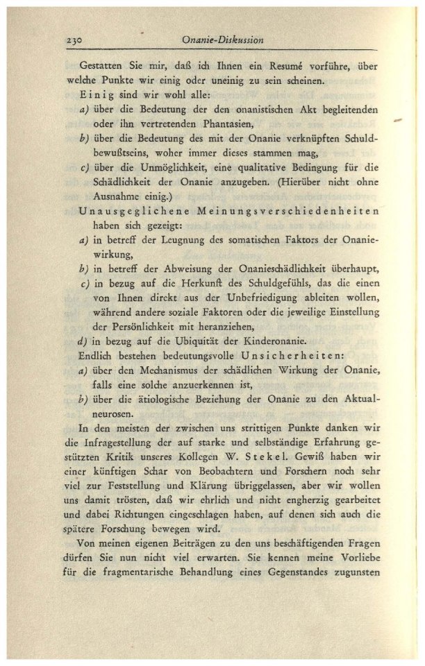 schließen, wenngleich ich Stekel zugebe, daß sie in einer Anzahl