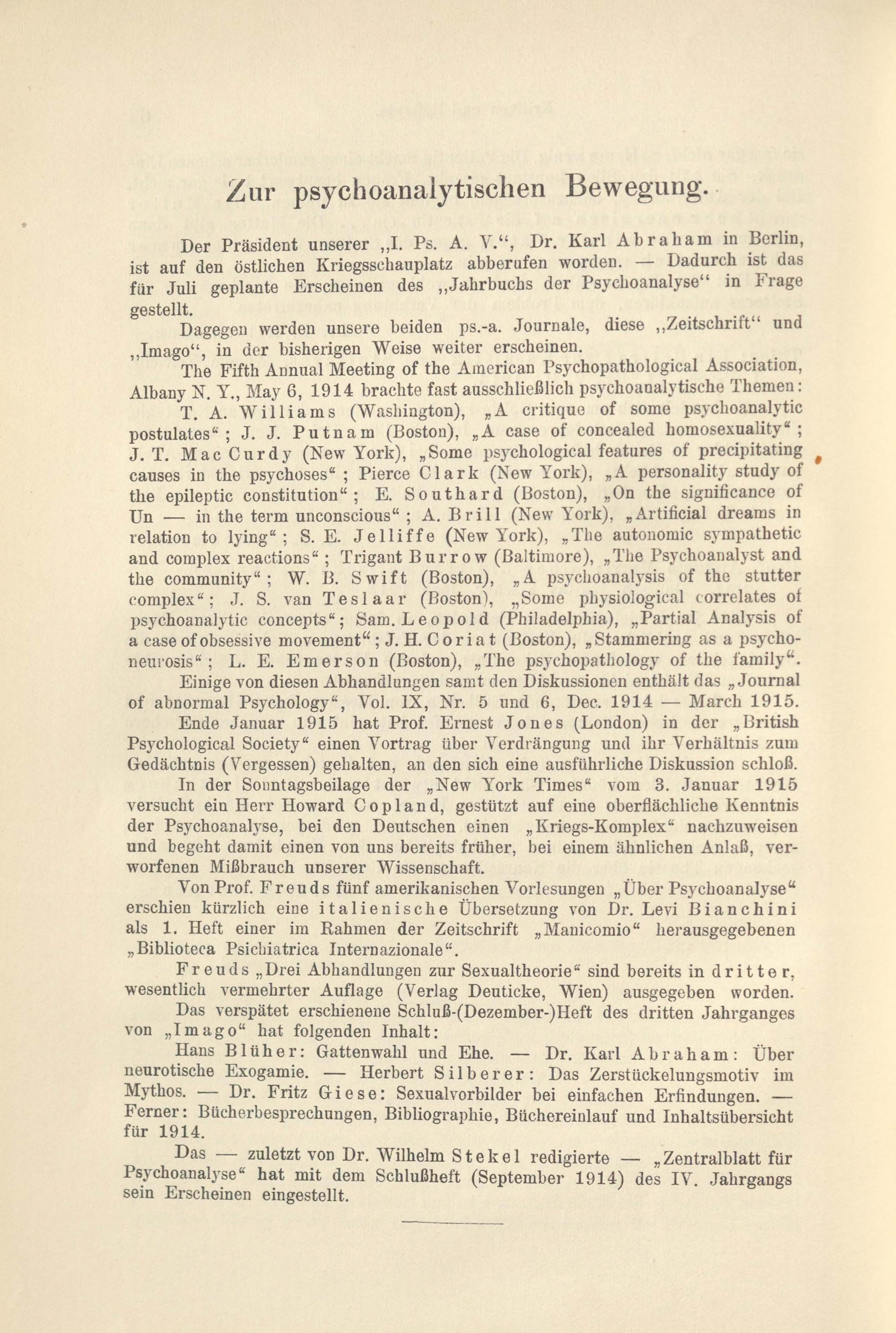 Zur psychoanalytischen Bewegung [Januar 1915] 1915-771/1915
