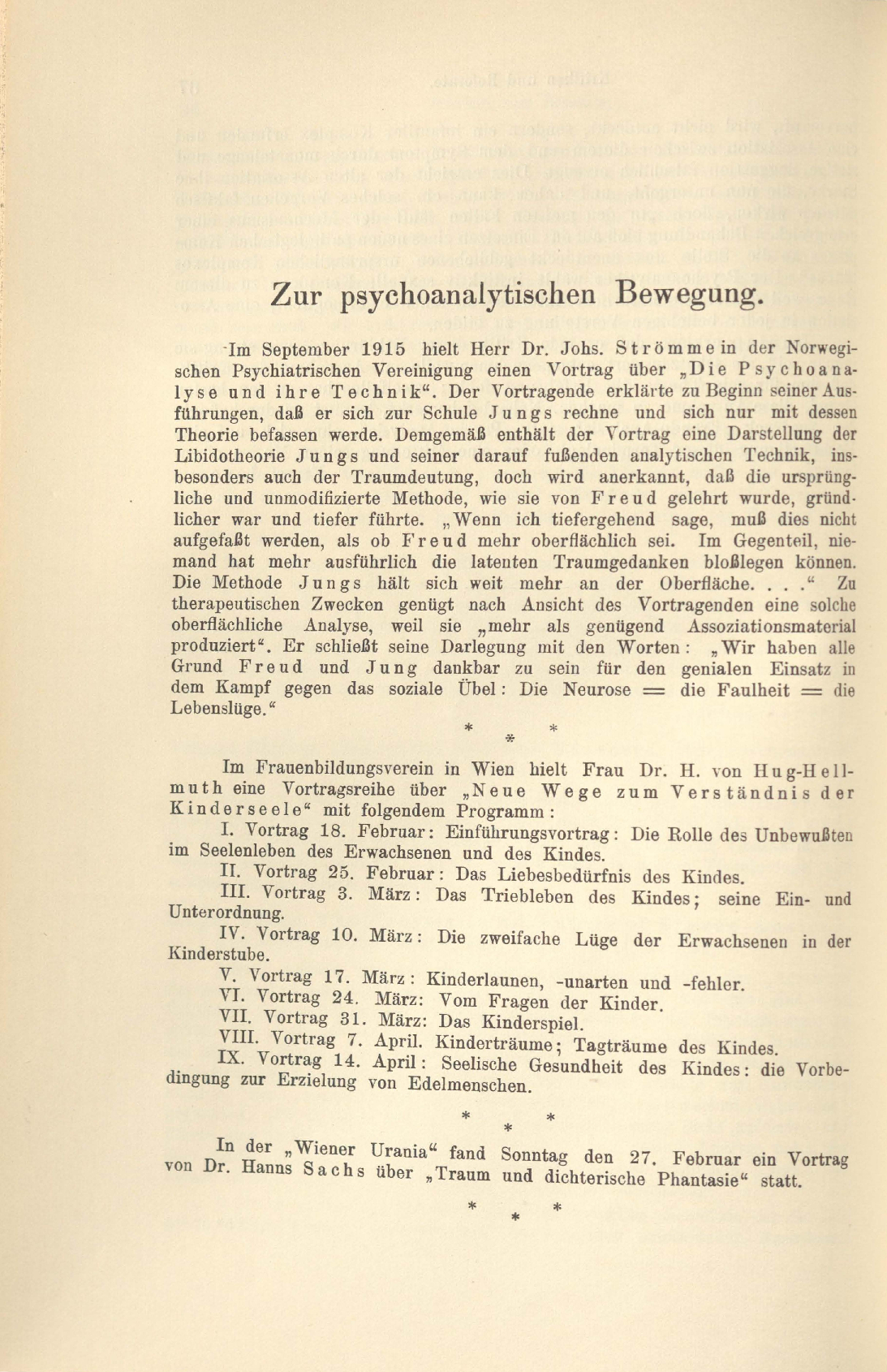 von Dr. Hanns Sachs über „Traum und dichterische Phantasie“ statt.* *