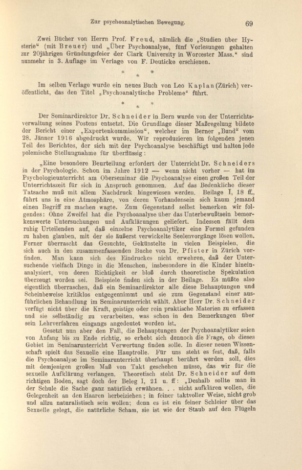 die Psychoanalyse im Seminarunterrieht überhaupt berührt werden soll, dies