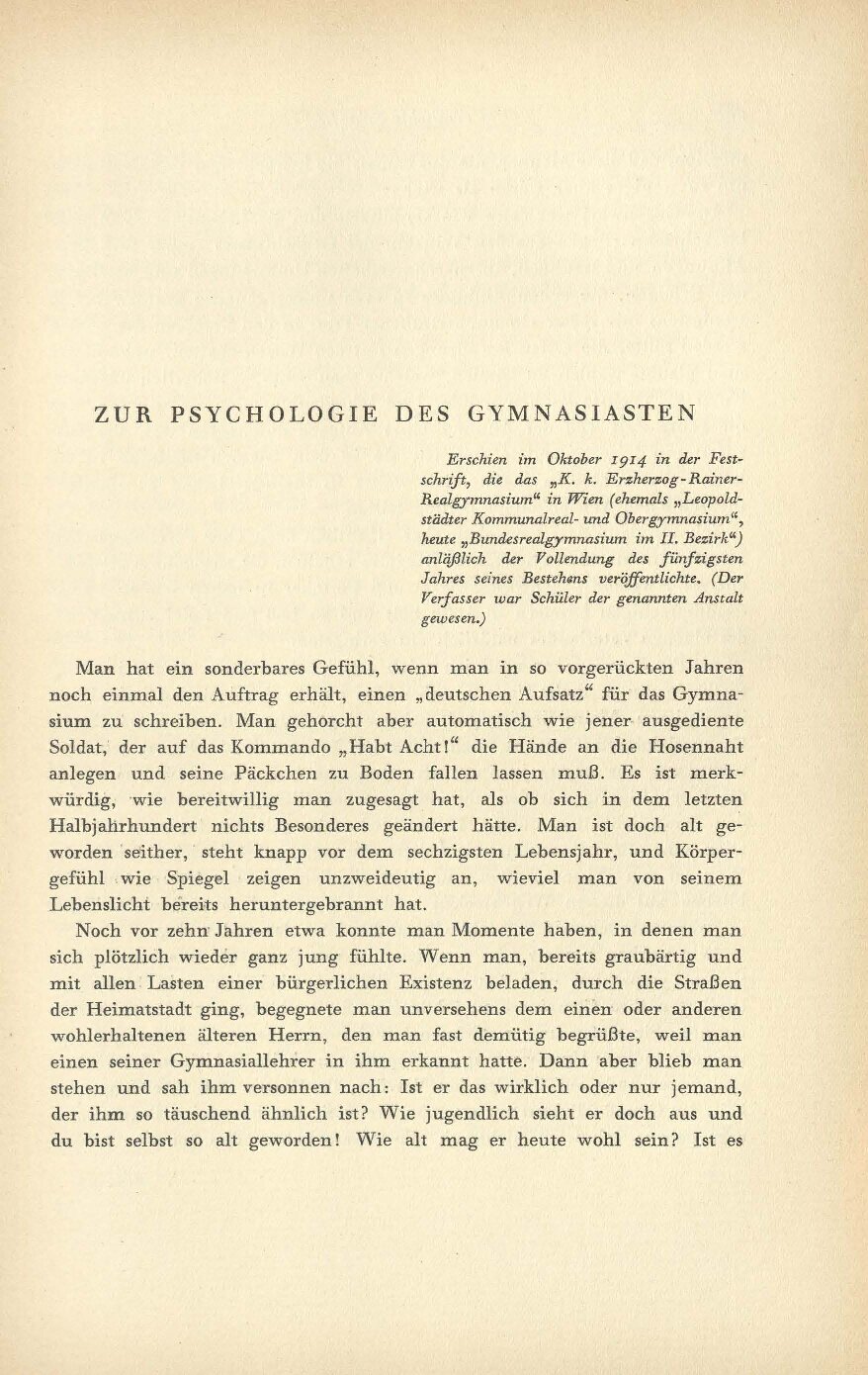 Zur Psychologie des Gymnasiasten                                                                                                                                                      289