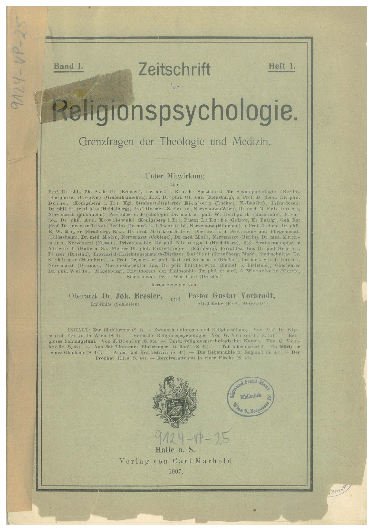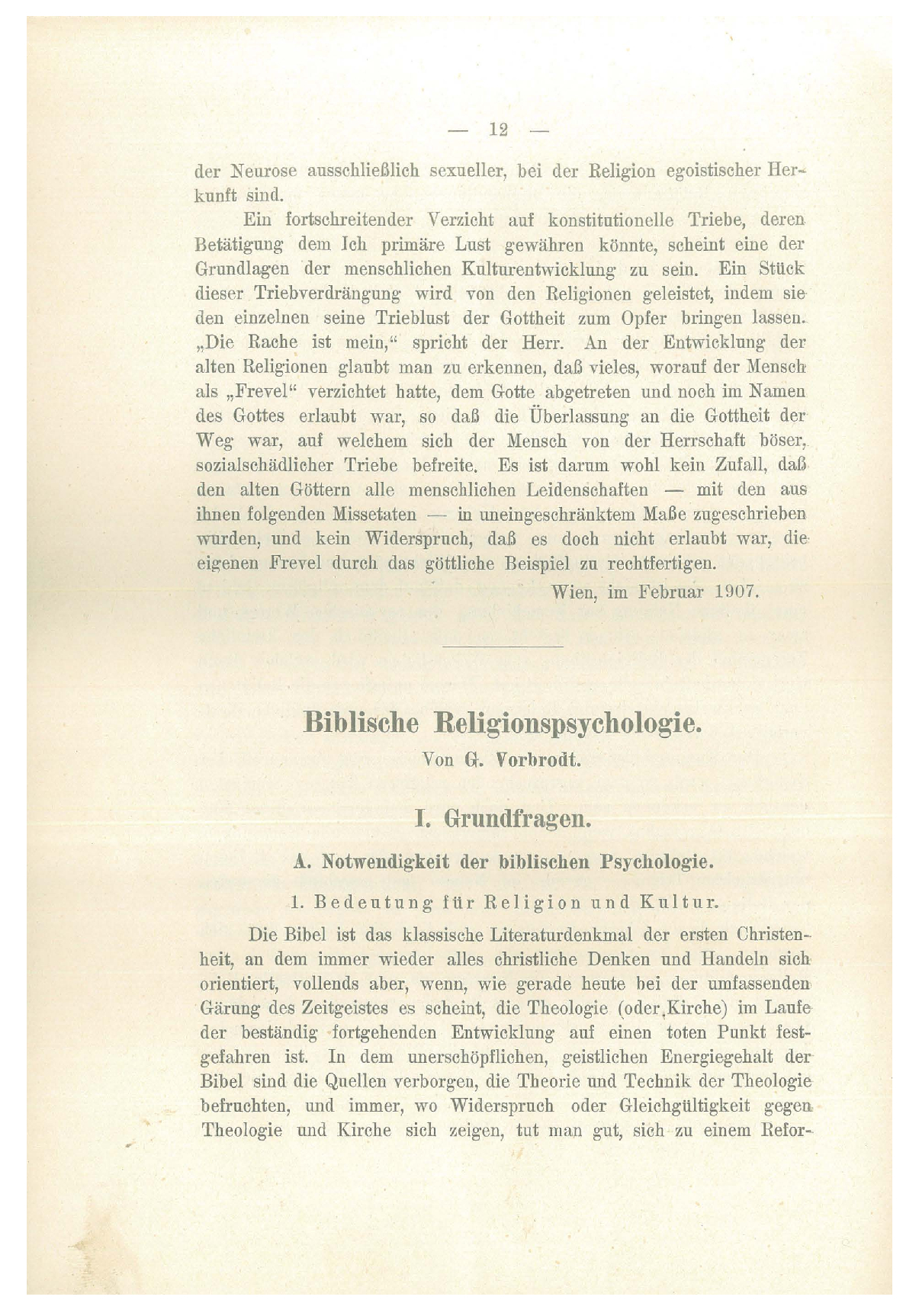 mund Freud in Wien (S. 4). | Biblische Religionspsyehologie. Von G. Vorbrodt (8. 12), Reli-