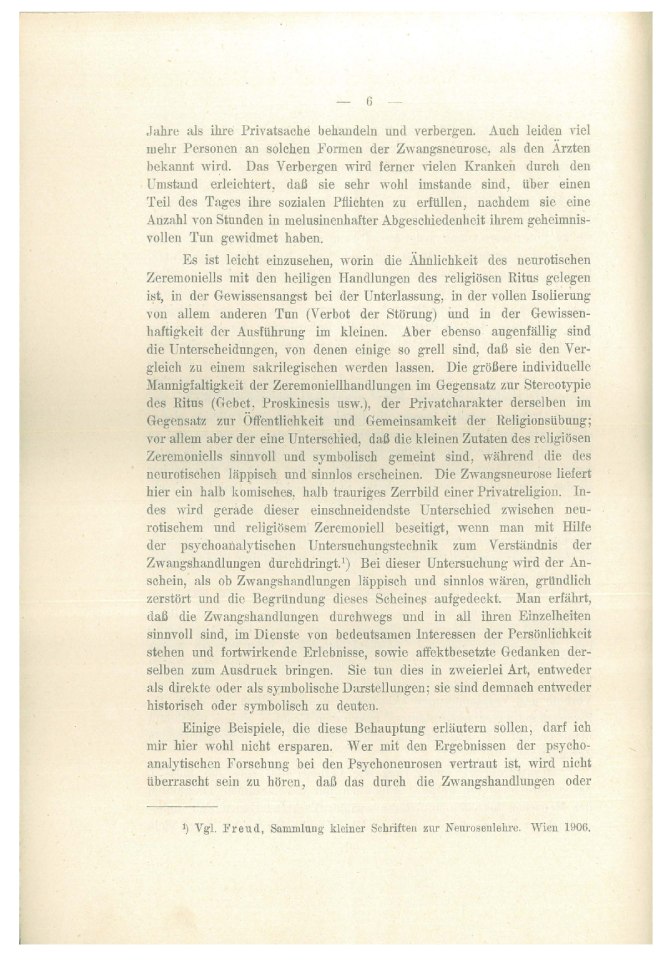 wahrscheinlich‘ tief liegende Kriterium der Zwangsneurose aufzuzeigen,